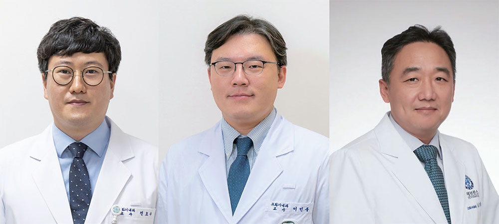 ▲(왼쪽부터) 이대서울병원 전호수, 이민종 교수, 세브란스병원 김승업 교수(소화기내과)