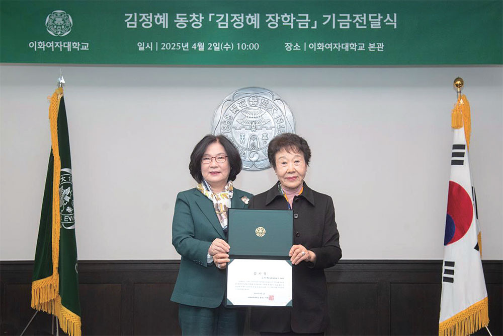 4월 2일 이화여자대학교 본관 접견실에서 김정혜 동창(의학·70졸)의 기금 전달식이 열렸다. 이화여자대학교 의과대학의 김정혜 동문(19기)은 졸업과 함께 미국 이민을 선택하여 마취과 전문의로 활동하였으며, 타국에서도 이화의대 후배들의 학업을 장려하기 위한 응원을 아끼지 않았다. 그러한 뜻을 담아 2010년에는 ‘백분의일의나눔 장학금’ 기부에 참여하였고, 2022년에는 ‘김정혜 장학금’을 신설하였으며 2024년 의과대학 대학원생 장학금 등을 포함하여 현재까지 이화여자대학교 의과대학에 누적 36만 4000달러(한화 약 5억 3000만원)를 기부하였다. 학생 기자단 취재진은 김정혜 선배님의 나눔과 봉사 정신을 본받고자 직접 만나뵙고, 인터뷰를 나누었다.