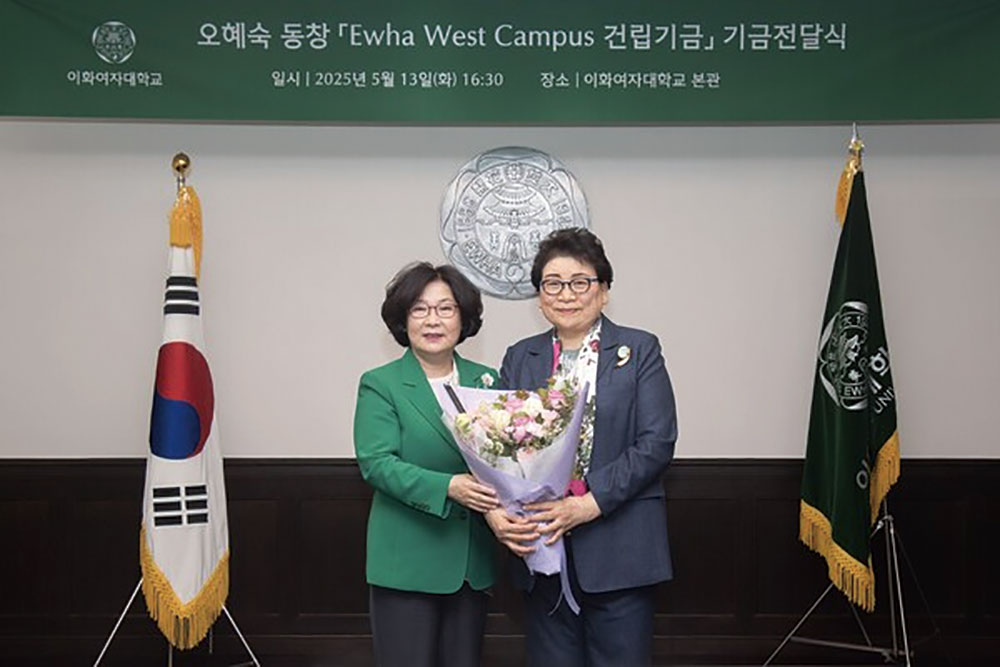 이화여자대학교(총장 이향숙)는 의학과 졸업생인 오혜숙 동창(의학 78졸)로부터 ‘이화 웨스트 캠퍼스 건립기금’ 5억 원을 기부받았다. 오 동창은 산부인과 전문의로 경기도 의정부에서 병원을 운영하고 있으며, 1994년부터 이화여대와 이화의료원에 대한 깊은 애정을 바탕으로 장학 후원, 교육 인프라 구축, 학교 발전 등 다양한 목적의 기부를 이어 왔다. 특히 이대서울병원 설립 당시 고액을 기부해 병원 내 ’오혜숙홀’이 조성되기도 했다. 이번 기부금은 이화여대가 추진 중인 웨스트 캠퍼스 건립 사업에 사용될 예정이다. 이 사업은 이화여대 생활환경관·동창회기념관 재건축을 포함해 이화여대 캠퍼스 서쪽 후문 영역을 글로벌 융합연구, 산학협력 및 창업을 이끌어갈 최첨단 미래 캠퍼스로 구축하는 대형 프로젝트이다. 이화여대는 이번 기부를 기념해 새로 조성될 캠퍼스 내에 오혜숙 동창의 이름을 딴 공간을 마련할 예정이다.